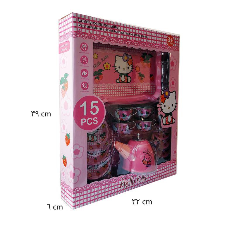 ست اسباب بازی چایخوری مدل هلو کیتی مجموعه 15 عددی