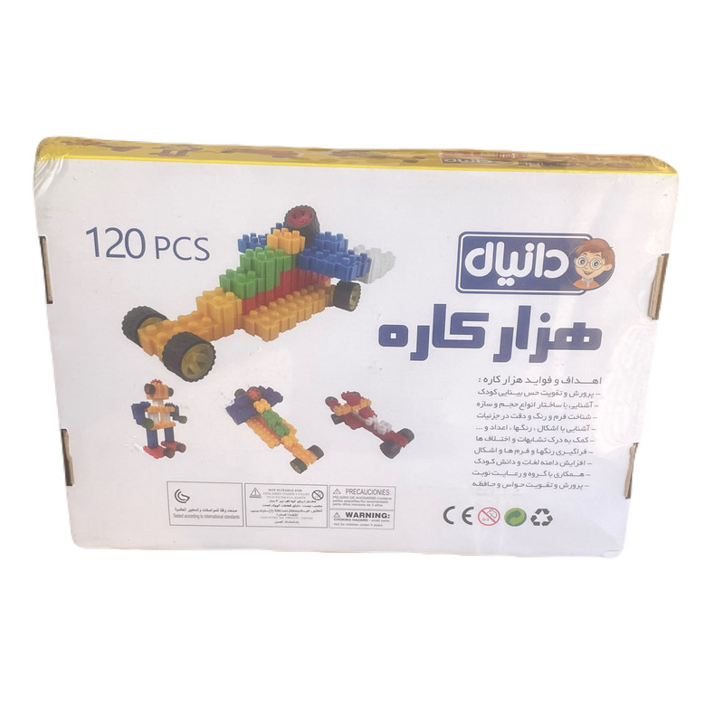 لگو هزار کاره دانیال 120 قطعه ای می باشد که شامل آجر ها و چند عدد تایر می باشد. با استفاده از این قطعات می توانید انواع ماشین ها و ربات ها را بسازید و از بازی با آن ها لذت ببرید. این محصول مناسب کودکان 4 سال به بالا می باشد.