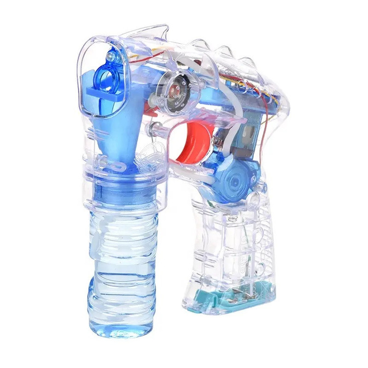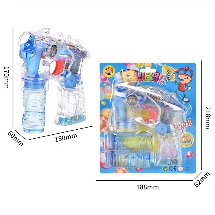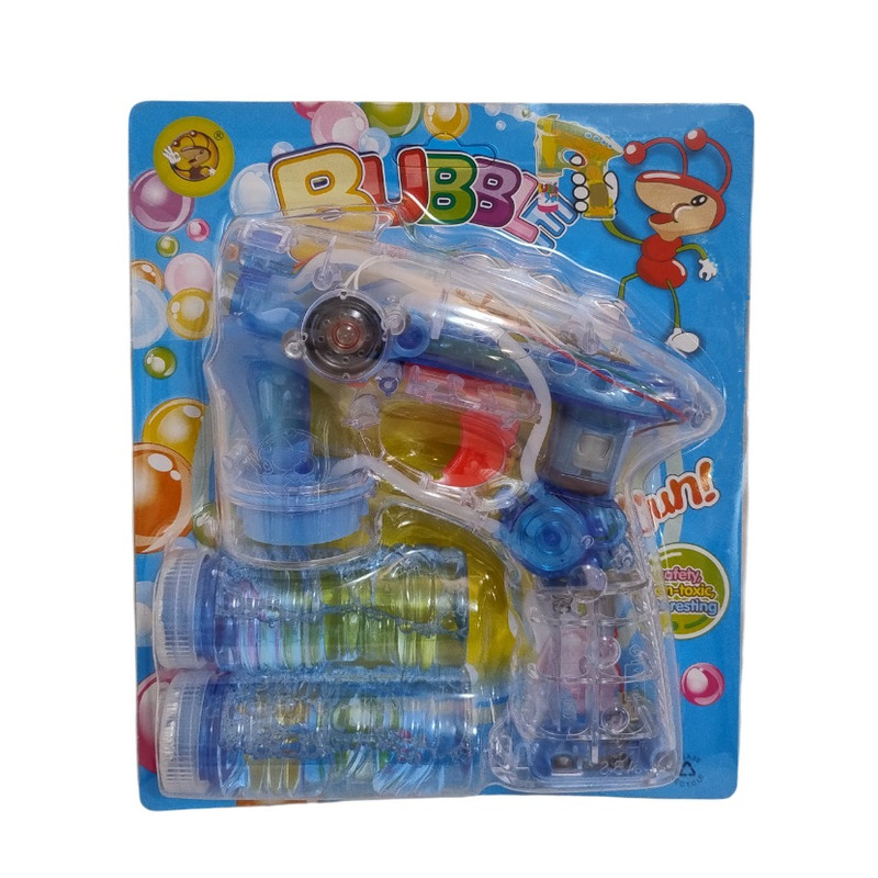 تفنگ حبابساز به طول 15 و ارتفاع 17 سانتیمتر . دارای جلوه نور و صدا . نیاز به 3 عدد باتری قلمی میباشد .