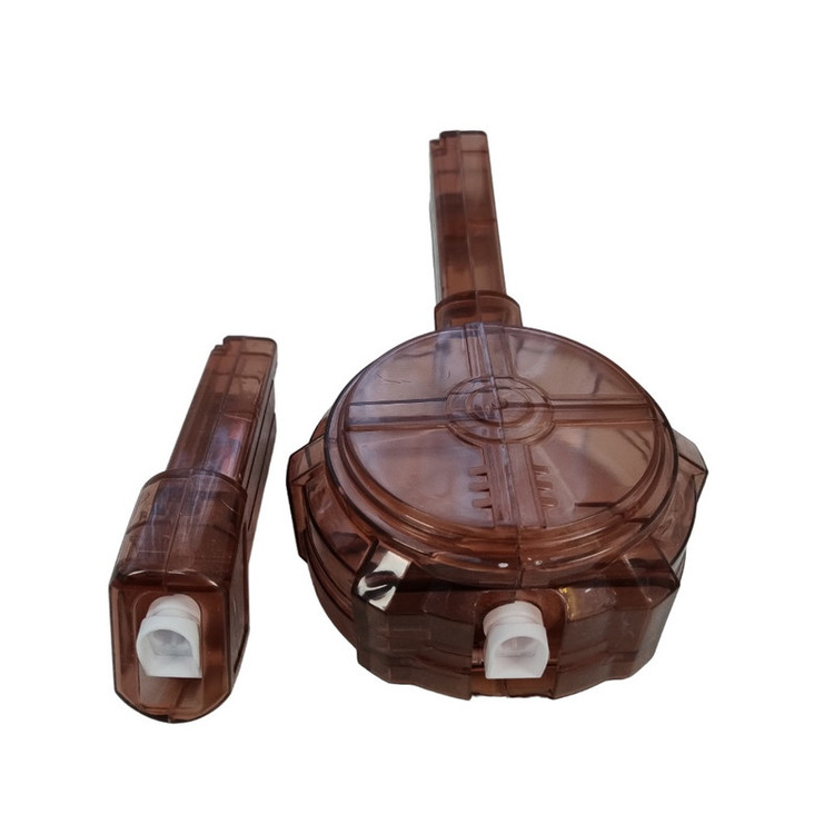 تفنگ آبپاش شارژی به طول 22 سانتیمتر . دارای 2 مخزن آب کوچک و بزرگ که به صورت خشاب قابل استفاده میباشد .