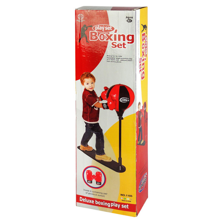 کیسه بوکس بادی است. اقلام موجود در جعبه این کیسه بوکس: کفی پلاستیکی زیر پا، پایه، میله تنظیم فلزی ، کیسه بوکس بادی ، دستکش چرمی ، مهره واشر. قابلیت تنظیم ارتفاع میله از 80 تا 115 سانتیمتر